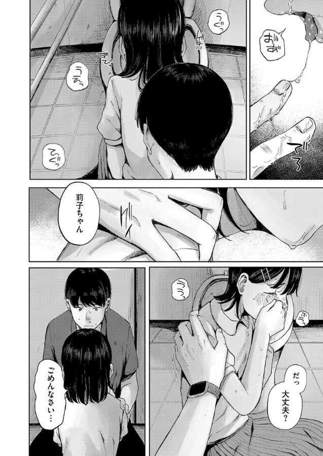 体調不良で塾の授業を早退する莉子。そこで兄の友人で同じ塾の講師をしている宮田と偶然出会う。一人で帰宅するという莉子に家まで送るという宮田。移動のバスでは懐かしく昔話をしていたが、バスを降りると暑さからか急に気分が悪くなった莉子。宮田は慌てて公園のトイレに連れていき介抱するが莉子はなかなか上手く吐けないでいた。顔を真っ赤にし、涙と唾液でぐしゃぐしゃになった莉子の表情を見た途端、宮田は己の裡(うち)にある昏い衝動に駆られていき──。