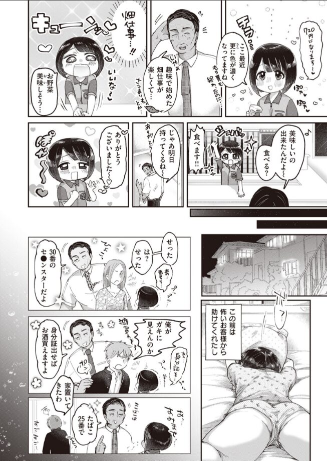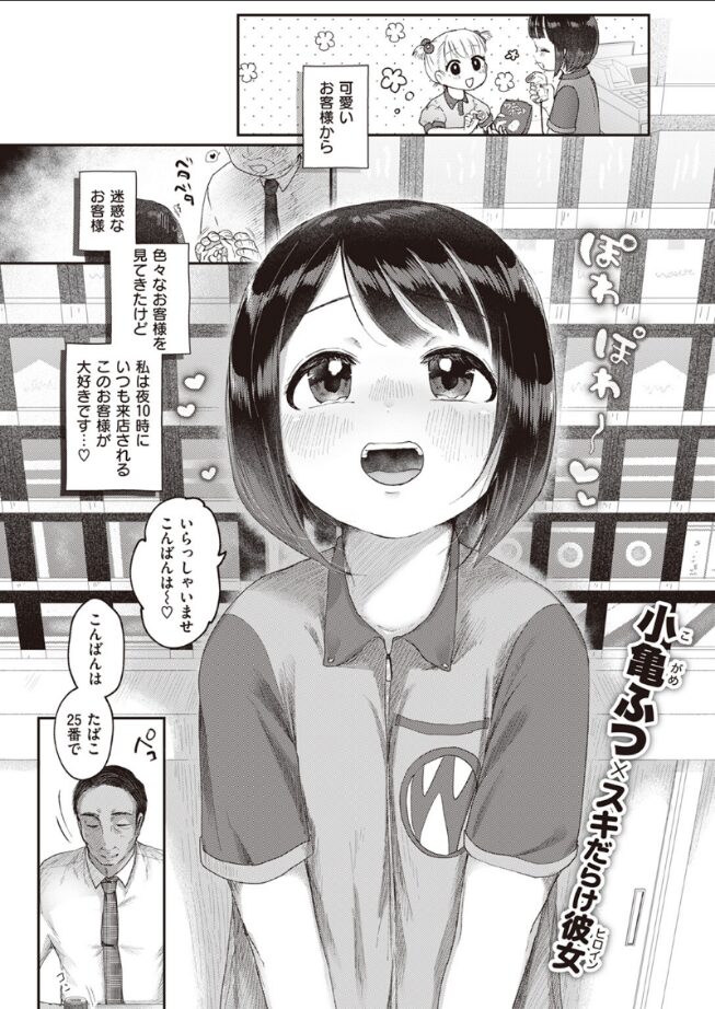 「いらっしゃいませ、こんばんは〜♪」コンビニ店員の愛ちゃんは見た目が●●23歳。毎日夜10時に来店して、いっつも優しく愛ちゃんを助けてくれる日焼けしたおじさんの事がだ〜い好き!あるきっかけで初デートにこぎつけた二人はめでたくお付き合いをすることに……!年齢差、体格差&いちゃいちゃハードプレイで魅せる濃密32ページ!!