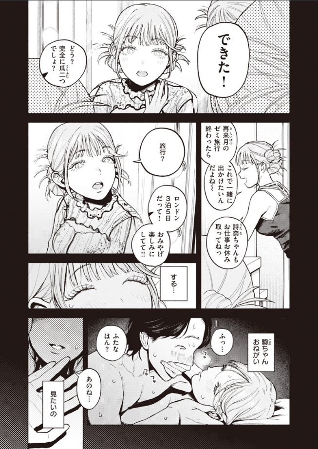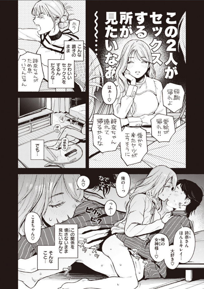 (私にはしないようなこと……もっといっぱい見たい♪)大好きな彼氏、大好きな妹。大好きだから、2人のSEXが見たい!!妹・愛絵(あえ)が海外旅行に行っている間、彼女になりすますことにした詩奈(うたな)。その目的は……妹として彼氏とSEXするため!?普段は優しく紳士的な彼氏は、愛絵に対してだけ気安く雑な態度。子どものように口喧嘩する2人なら、きっとかわいいSEXをするはず。関係を壊さないまま、二人のSEXを特等席で見たい……。そんな願いを叶えるため妹の格好で誘惑すると、想像以上に激しくされて……。