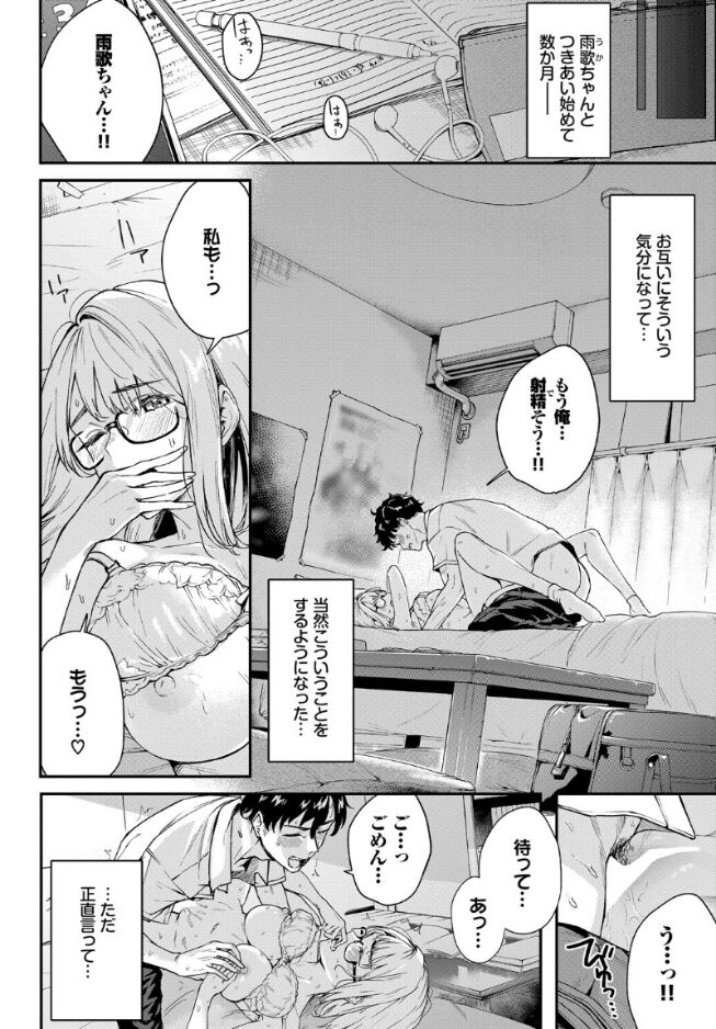 【雨と液でしとどな思春期男女の身体…】魅惑のストーリーテラー・ひらやんが贈る、しっとり群青エロス─。彼女の雨歌をセックスでイカせられず悩んでいた岳。そんな中二人で出かけようとするが、大雨に遭ってしまい無人駅で雨宿りすることに。制服から透けて見える下着に欲情していると、どうやら彼女も発情している様子で…!?積極的に求めてくるメガネ女子がエロすぎる野外プレイ!