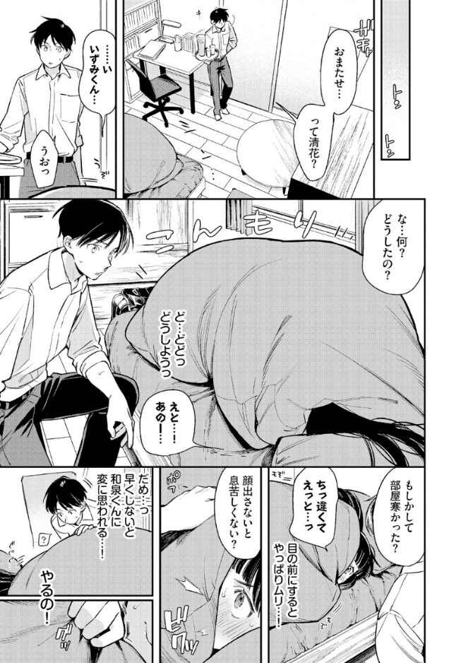 【恥ずかしがり屋が大奮闘っむっちりボディで誘惑えっち!】美麗アオハル作家・蛸田こぬが描く、大好きな彼へ大胆アピール♪初めて彼氏ができた恥ずかしがり屋の清花。ある日友人からAVを見せられると、男の人はこういうのが好きなんだと驚く。緊張しいな清花は、このままのエッチだと彼氏が愛想尽きてしまうのではと焦り出し、大胆な女になると決意する! そして彼氏の家に行くと、今日は私から誘うんだと裸になって布団に潜り込むが…!? かわいい赤面にむっちり美巨乳がたまらない大胆アへ顔えっち!