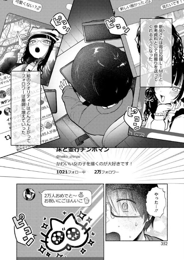 絵を描くのが趣味の佐古だったが、クラスの地雷ギャルの新見にイラストを見られ、絵をあげているアカウントがバレてしまう! 見た目の派手な印象とは裏腹に、なぜか自撮り画像などで応援してくれる新見に、少しずつ心惹かれていく。もう少し彼女の魅力に釣り合うような自分に……と思っていた矢先に、痺れを切らしたギャルに襲われてしまうのであった♪