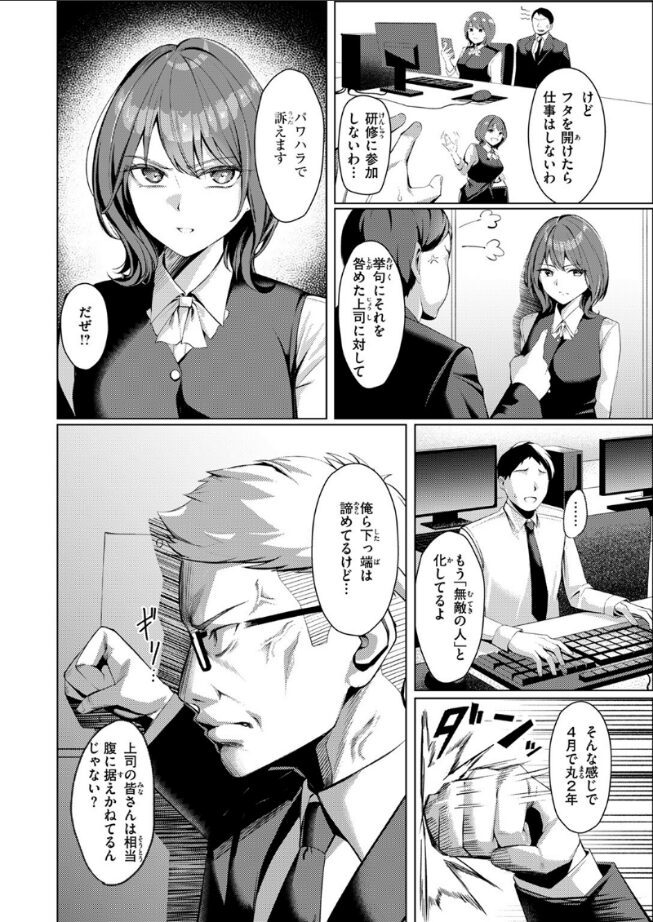 「川上(かわかみ)君…ここが君の新しい配属先、社史編纂室もとい…性処理室だ」いわゆる顔採用で大手商社に入社が決まった川上。しかし彼女はいざ入社したら仕事は全然しないわ研修に参加しないわ、挙句それを咎めた上司をパワハラで訴えようとするわ……もう無茶苦茶。そんな彼女にふさわしい部署なんて……作ればいいんだ、そういう部署に堕とせばいい。