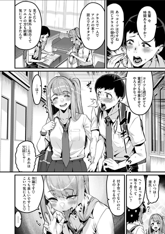 私はギャルでもないしビッチでもないんだってば!!ヤリマンの後輩・西沢からの期待を裏切れず、見栄を張った結果いつの間にか西沢以上のヤリマン設定になってしまった黒ギャル(のような見た目に部活焼けした処女)の美弘。ある日、西沢からきた助けてほしいという連絡に急いで飛んでいくと、そこには前に紹介された童貞・御代(みしろ)にイカされまくった西沢が。童貞にイカされまくって悔しい西沢は、私にかたき討ちを頼んできて……!?