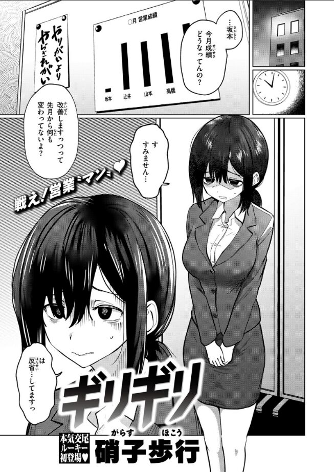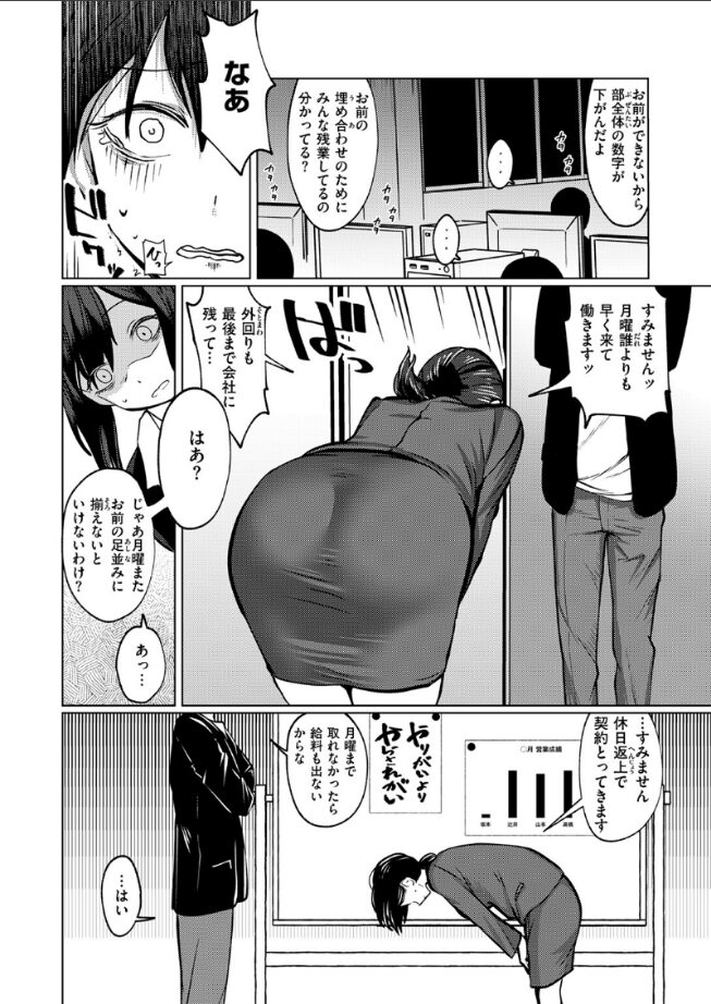 超絶ブラック企業で上司に追い込まれた営業ガール。休日返上で訪問営業をかけるも、うまくいかず……。この人を逃したら後がない! と訪れた男の人の家に上がって、カラダを使って契約を勝ち取る!?