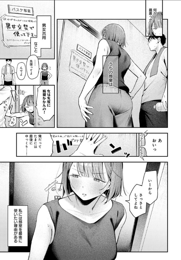 ひとつの部室を共有している女子バスケ部と男子バスケ部。その部室で、女バス部長・早乙女桃は、オナニーを日課としていた。今日も、男の匂いが充満した部室で一人遊びに耽っていると、ビブスを忘れた男バス部長・乾誠一が部屋に入ってきた!?秘密の趣味を言いふらされては困る!「あのさっ 抜いたげるから… 黙ってて……」早乙女は乾のチ○ポを取り出して……♪やわ肌界の乳スター・で子先生が贈る、負けん気も性欲も強いスポーツ女子と口止めセックス☆