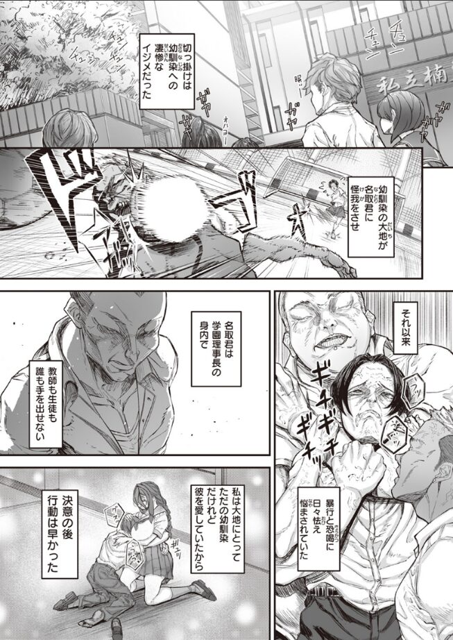 「ごめんね 大好きなアナタ これから沢山ハメられます」凄惨なイジメの被害者であった幼馴染であり意中の相手・金田(かねだ)を助けるために、学園を牛耳っていた名取(なとり)に勝負を挑んだ佐渡喜子(さわたりよしこ)であったが、結果惨敗してしまう。幼馴染のイジメは収まったものの、喜子は名取に処女を奪われ蹂躙される日々が続く。快楽漬けにされた結果、彼女にも変化が。名取の命令で金田と付き合うことになるも、名取に調教された喜子の身体は物足りなさを感じ始めてしまい……。