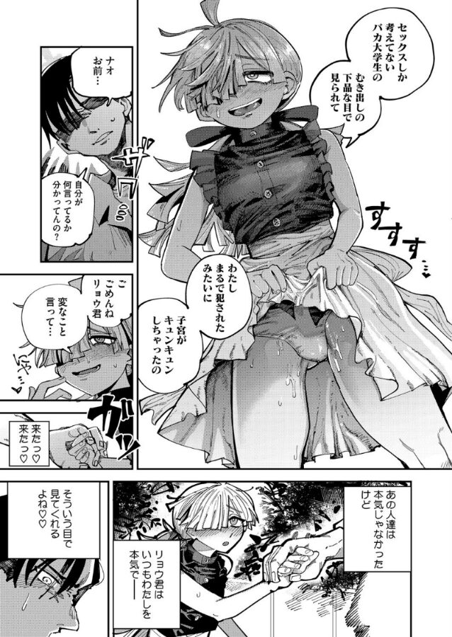 ナオちゃんは、実はハードに犯●れるのが好きなドM。彼氏のリョウくんは、そんなナオちゃんを守ろうとする優しい男の子。でもナオちゃんは知っていました。リョウくんが実は嫉妬深くて独占欲が強く、彼女を他の男に取られまいとするあまり、いつもおま○こが彼のチ○ポの形になっちゃうくらい激しくエッチしてくれる事を。彼女が一番して欲しい「お仕置きレ●プ」をしてくれる事を……だからナオちゃんは今日も、リョウくんの嫉妬心を煽っています。大好きな「お仕置き」をしてもらうために……♪
